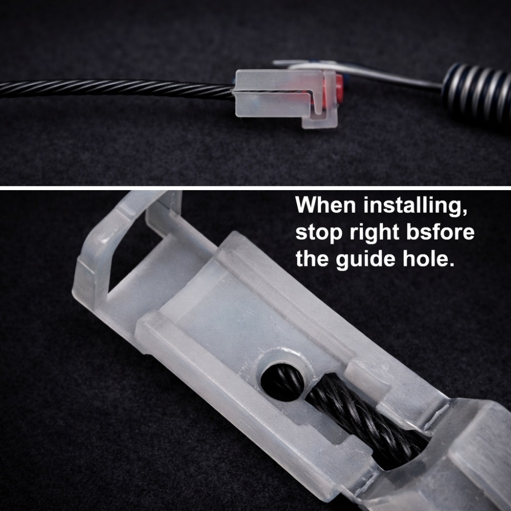 For full instructions, please watch the video. Important: Do not insert the visco too far—stop right before the guide hole.